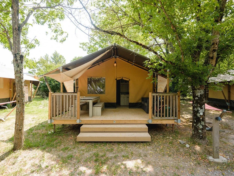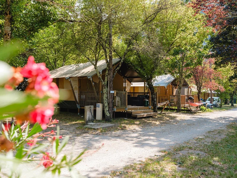 På campingpladsen er der et skønt poolområde der ligger med smuk udsigt til de grønne bjerge. Her kan I hoppe en tur i vandet eller nyde solens stråler på en af liggestolene. Har I brug for en pause fra poolen, kan I spille en omgang bordtennis eller petanque. I hjertet af campingpladsen er også et område med mulighed for at spille fodbold og en legeplads med hoppeborg til de små i familien. Placeringen i naturen giver også gode muligheder for at vandre, klatre, cykle på mountainbike eller at sejle i kano og padle i floden.