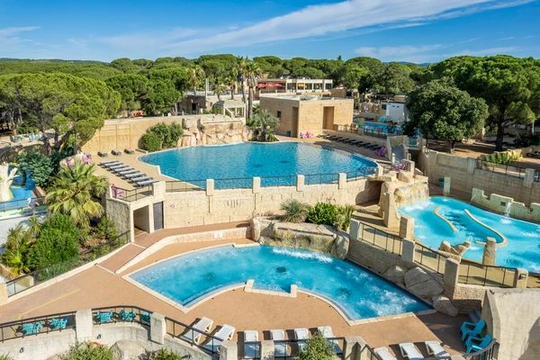 På denne campingplads finder I et dejligt poolområde, som består af et majansk inspireret akvatisk tempel. Der er i alt 4 forskellige pools samt et separat børnebassin. Derudover er der to lange vandrutsjebaner. Den store fælles solterrasse, der omringer de fire swimmingpools, gør det muligt for alle at være der. Her kan bruge timevis, hvad end man vil slappe af på liggestolene eller lege i vandet. Bemærk, at poolområdet er åbent fra d. 4/4-30/9.
