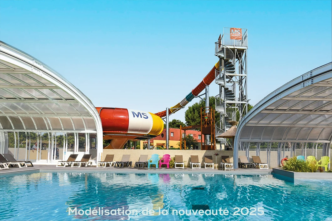 På campingpladsen kan du svømme hele sæsonen, fordi den overdækkede, opvarmede swimmingpool er åben hele sæsonen. Det udendørs poolområde åbner fra midten af maj og rummer udover en stor swimmingpool også et børnebassin med legeelementer, 4 rutsjebaner, jacuzzi og dejlige liggestole blandt palmerne. Leder du efter lidt mere afslapning? Saunaen og hammam står til din rådighed i wellnessområdet for gæster over 18 år. Kun 800 meter fra campingpladsen ligger den smukke strand i Argelès-sur-Mer med Middelhavets dejlige badevand.