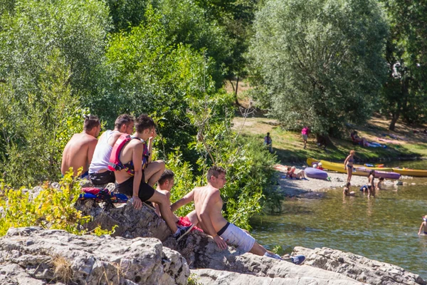 Campingpladsens naturlige centrum er floden, som løber lige gennem området og skaber de perfekte rammer for en helt særlig badeoplevelse. Her er ingen kunstige bassiner – kun klart, frisk vand, som både børn og voksne kan nyde på varme dage. Flodbredden fungerer som en slags naturlig strand, hvor man kan bygge sandslotte, tage solbad eller læse en god bog i fred og ro.