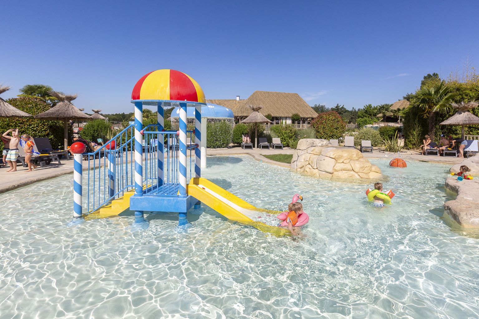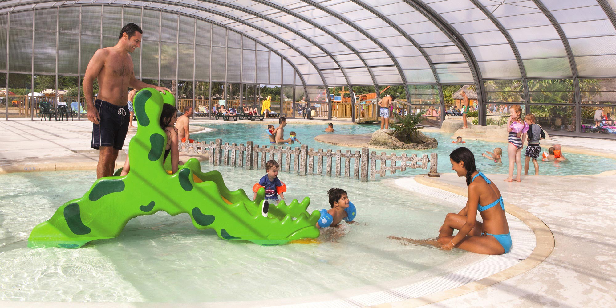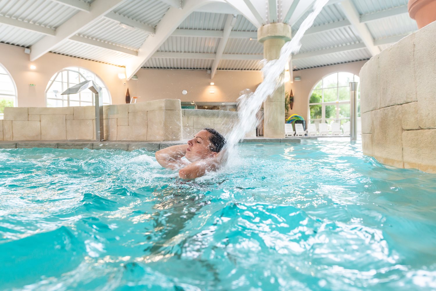 Campingpladsen byder jer på et fremragende poolområde med bl.a. vandrutsjebaner, indendørs swimmingpool, springvand, bølgebassin, lagune- og børnepool. Poolområdet er omgivet af en skøn solterrasse med liggestole, hvor I kan dase i solens varme stråler. I kan nyde godt af campingpladsens spa- og wellnessområde mod betaling. Her er bl.a. sauna, massage, jacuzzi og forskellige kropsbehandlinger.