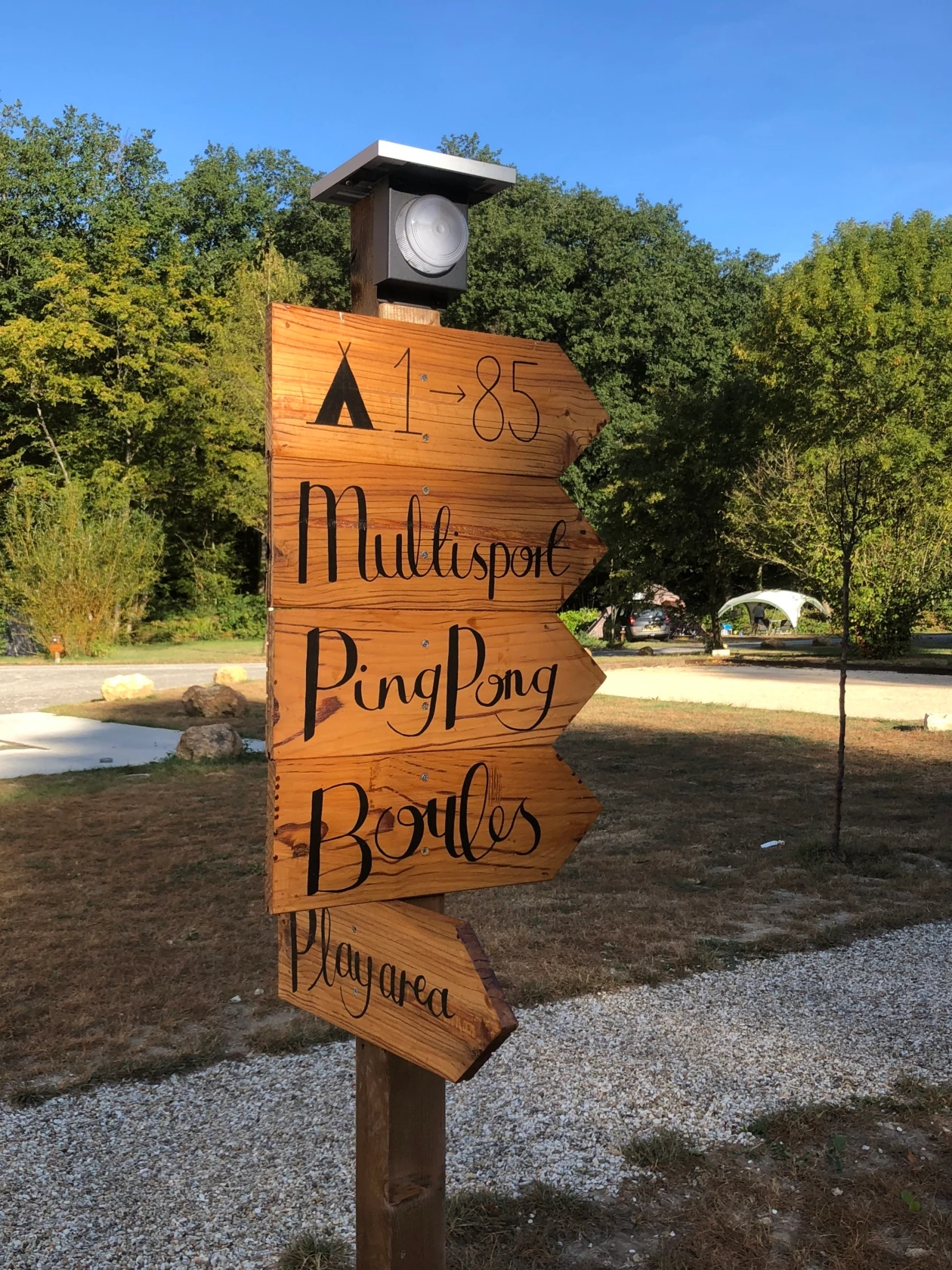 På campingpladsen er der en opvarmet, udendørs pool med en unik indbygget rampe på den ene side af bassinet, der giver nem adgang for unge, gamle og gangbesværede. Der er også et soppebassin, hvor de mindste kan plaske rundt. Slap af omgivet af århundrede gamle egetræer og der grønne græsplæne, der omgiver poolområdet med liggestole. Hvis vejret ikke viser sig fra sin bedste side, så finder I i nærheden en indendørs pool. I kan være aktive på multisportsbanen, cykelstierne eller med en gåtur i skoven.