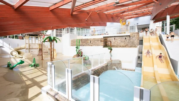 Camping Château de Lez-Eaux har et kæmpe poolkompleks, der henvender sig til et hvert familiemedlem. Der er både udendørs- og indendørs pool plus et børnebassin med vandspil og leg for de små, samt et spændende udvalg af vandrutsjebaner, springvand og et inspirerende jungletema. Den omkringliggende terrasse byder på rigeligt med liggestole, så i kan slappe af og nyde den franske sol. Campingpladsens sø vil det ikke være muligt at bade i, dog byder den på skaller og ål, hvis du er typen, som godt kan lide at fiske.