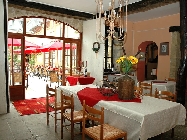 Campingpladsens restaurant ligger inde i slottets tidligere stalde i forbindelse med en udendørs terrasse, som benyttes på de varmeste dage. Her serveres udsøgte måltider med både kendte og lokale retter med friske råvarer. Derudover finder I også en afslappende bar, hvor det er muligt at bestille takeaway og pizza. Der er en lille campingshop med få fornødenheder samt brødservice, hvor I kan købe friskbagt brød og franske croissanter.