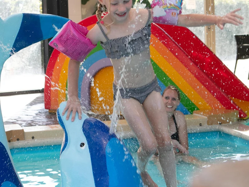 Camping t' Veld er det muligt at bade i den tilstødende sø med den smukke sandstrand, hvilket er en dejlig oplevelse, især på de varme dage. Til koldere dage er den opvarmede indendørs pool på campingpladsen et godt alternativ. For mindre børn er der et separat soppebassin med vandlegetøj og en lang vandrutsjebane til ekstra vandsjov.