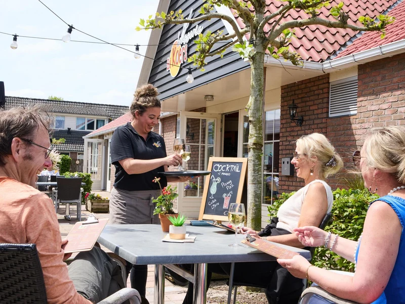 Når dagligvarerne til campingferien skal fyldes op, er der en minibutik i nærheden af receptionen, hvor kan du købe frisk brød hver dag, så I kan starte jeres morgen på bedste vis, inden aktiviteterne begynder. Nyd lækre drinks på terrassen i Restaurant Bi'j Koers eller spis de traditionelle lokale retter. Alle retter kan også fås som takeaway.