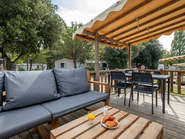 Når sulten melder sig, kan I spise på campingpladsens egen restaurant eller pizzeria, hvor der serveres lokale middelhavsretter, sprøde pizzaer lavet på italiensk maner og internationale klassikere. Ønsker I at tage maden med hjem i boligen, er der også mulighed for takeaway på campingpladsen. Bliver I tørstige i løbet af dagen, eller kunne I tænke jer at slutte dagen af med en drink og et spil kort med familien, byder campingpladsens bar på kolde drikkevarer.