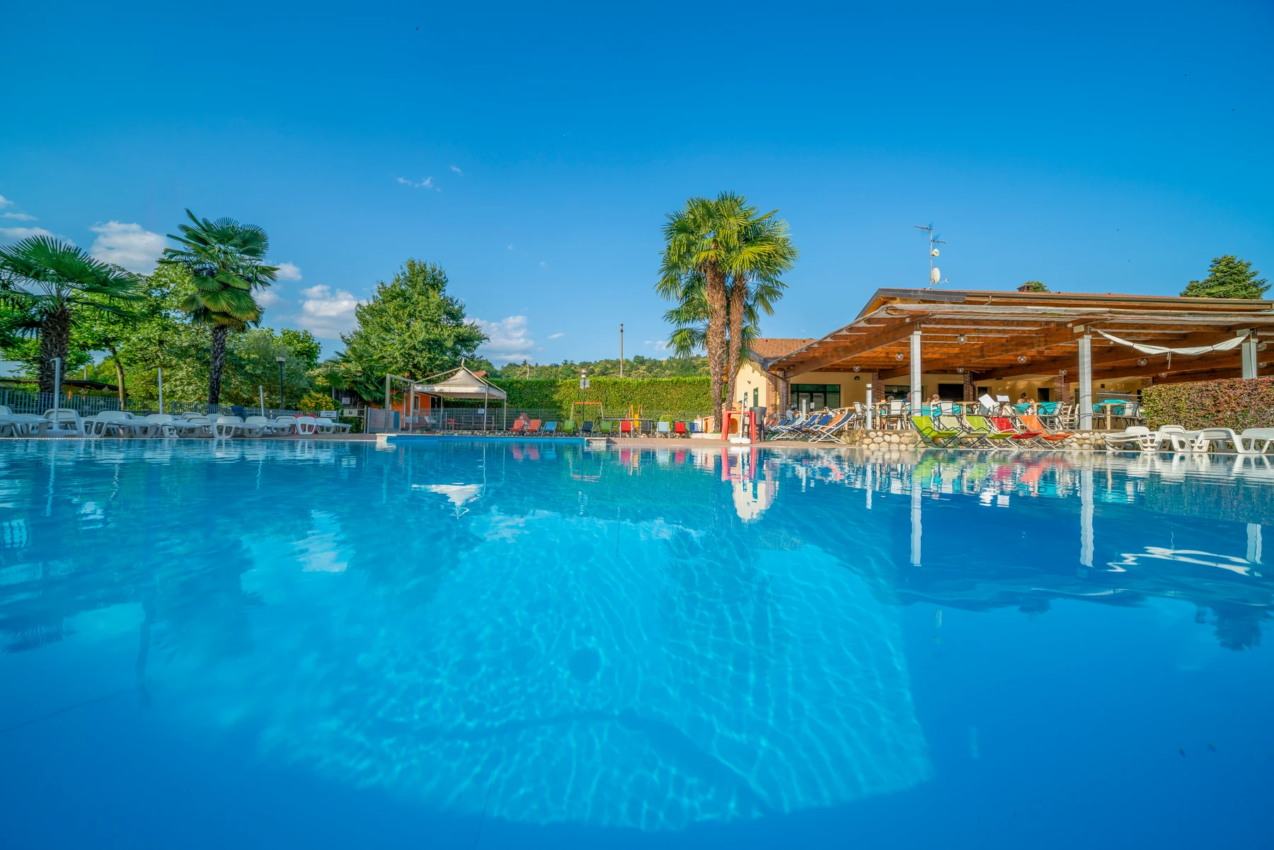 Campingpladsens poolområde består af en 180 m2, en solterrasse med liggestole samt en bar med kolde drinks. Camping Okay ligger ved Maggioresøen, det betyder direkte adgang til stranden og søen. Her kan man med sikkerhed bruge mange timer hver evig eneste dag!