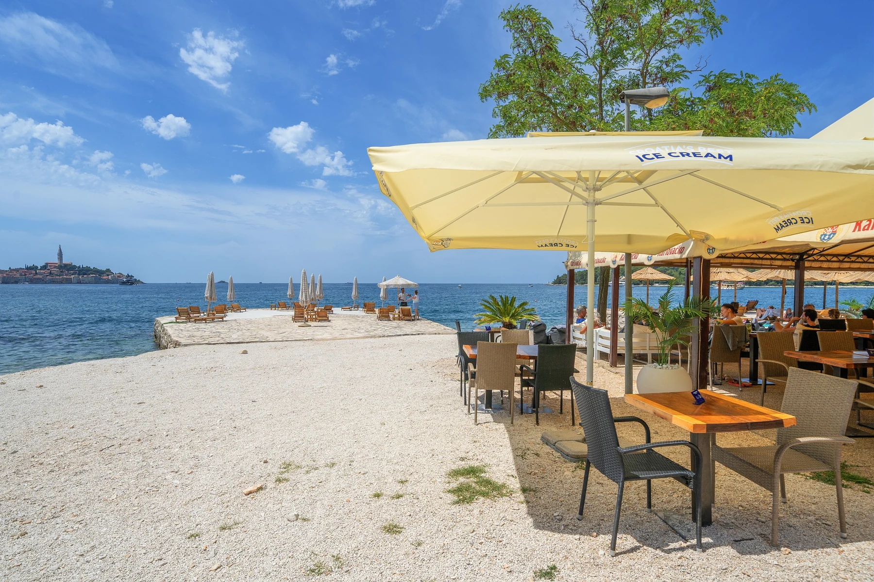 Når I vil på stranden, så skal I blot krydse campingpladsen for at sætte fødderne i sandet. Stranden er rigtig flot, og mens I slikker sol, svømmer eller andet, kan I nyde udsigten til byen. Hvis I vil på udflugt, men stadig have mulighed for at bade, så finder I, i få minutters gang fra centrum af Rovinj, Lone-bugten, der er kendt for at have de bedste strand i området.