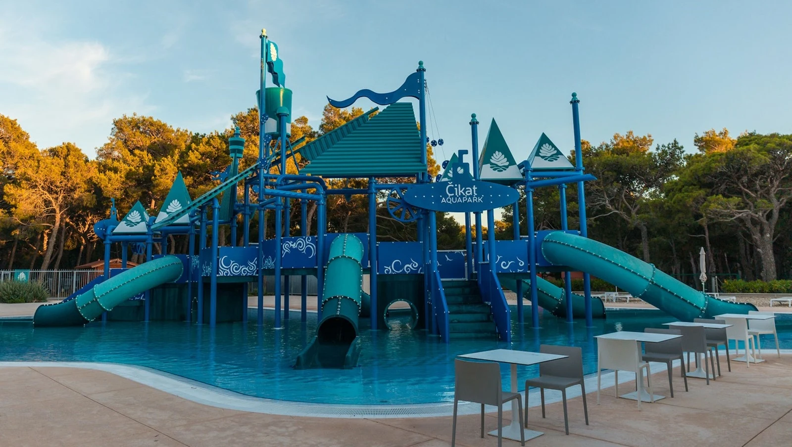 Camping Cikat byder på et lækkert stort og nyt Aquapark, med en 110 m lang vandrutsjebane, et legeslot, springvand, vandskråninger og hydromassage.
