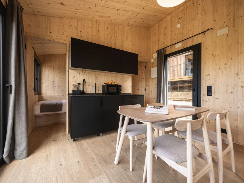 Der er også sørget godt for dit fysiske velbefindende: Den familievenlige restaurant direkte på campingpladsen forkæler dig med et varieret køkken, hvor der også er vegetariske retter på menuen. Der er også en snackbar, hvor du kan få en hurtig bid mad, og hvis du vil slappe af sidst på dagen, tilbyder baren eller den hyggelige cafébar den helt rigtige atmosfære. Terrasser med havemøbler inviterer dig til at læne dig tilbage og nyde den friske bjergluft.