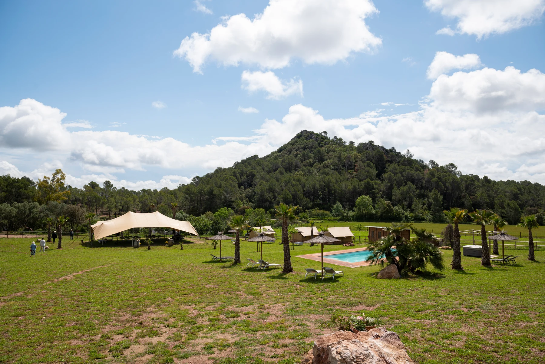 I midten af campingpladsen er der en enkel, men attraktiv swimmingpool, perfekt til at køle af i efter en gåtur eller en eftermiddag med solbadning. Rundt om er der solsenge med udsigt over de catalanske bakker. Atmosfæren er rolig, endda stille - en lettelse for dem, der er vant til overfyldte pools med larmende børn. Her kan du tage en bog med eller bare dig selv. Ingen travlhed, ingen forpligtelser, bare en frisk dukkert, når du har lyst til det. Slap af i musklerne i saunaen, spabadet for 2 eller med en massage.