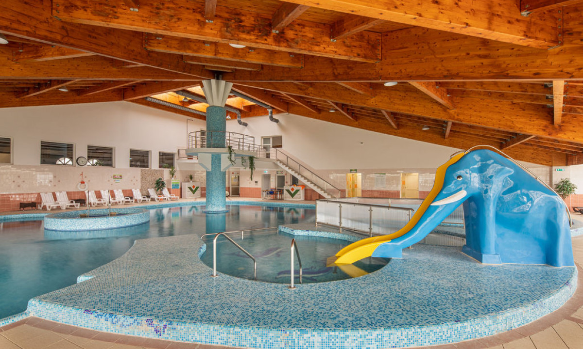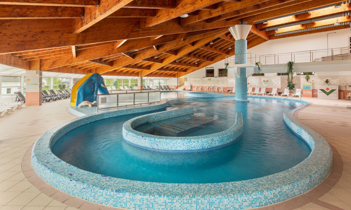 - Stor indendørs pool med vandrutsjebane