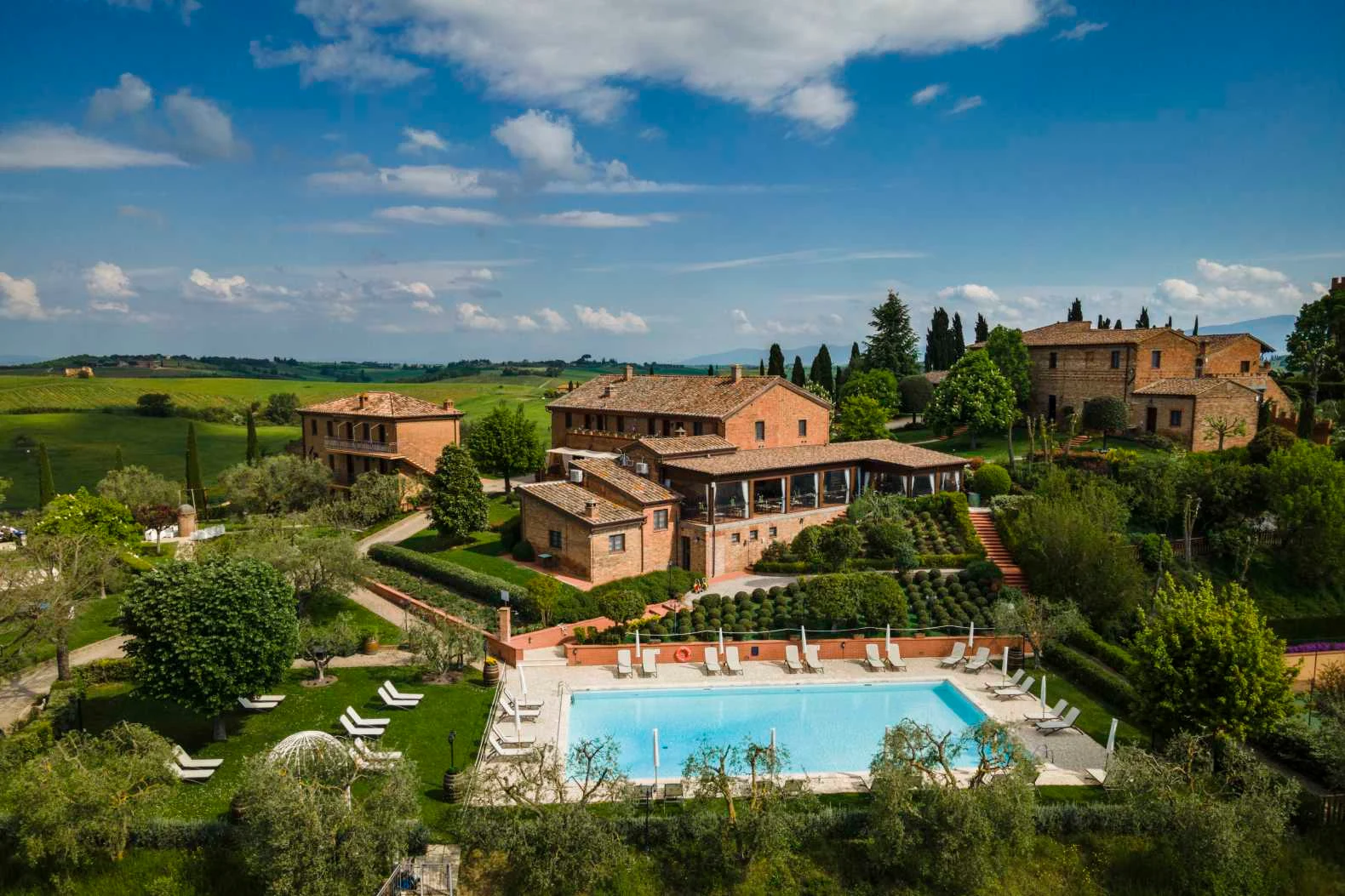 På Borgo Tre Rose i Montepulciano får I en autentisk oplevelse af Toscana med både ferielejligheder og hotelværelser, der ligger fredeligt placeret blandt de bløde bakker og uendelige vinmarker i Val di Chiana. Ferieparken er det perfekte sted til en afslappende ferie i det italienske landskab, hvor I kan nyde både udsigten fra poolområdet og forkæle jer selv med Toscanas udsøgte mad.