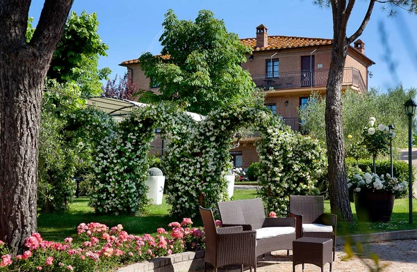 Med en spektakulær udsigt over de omkringliggende vinmarker og bølgende bakker giver Borgo Tre Roses swimmingpool et oplagt sted til at køle af og tage en pause fra feriens aktiviteter. Den solrige pooloase er omgivet af liggestole og grønne planter, der tilsammen skaber en afslappende ramme til afslapning og fordybelse.