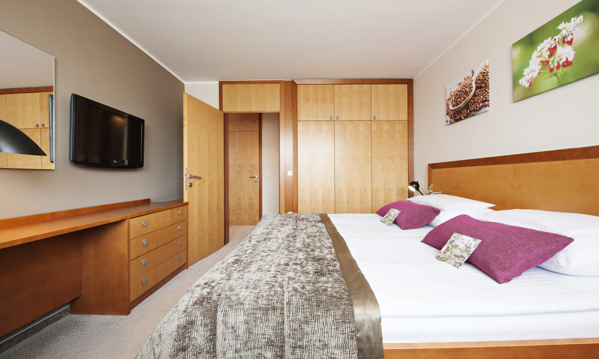 Værelserne på Hotel Ajda er ren luksus i lækkert, moderne design, der byder jer velkommen til nogle dage, hvor I ikke skal tænke på andet end at hygge jer sammen.